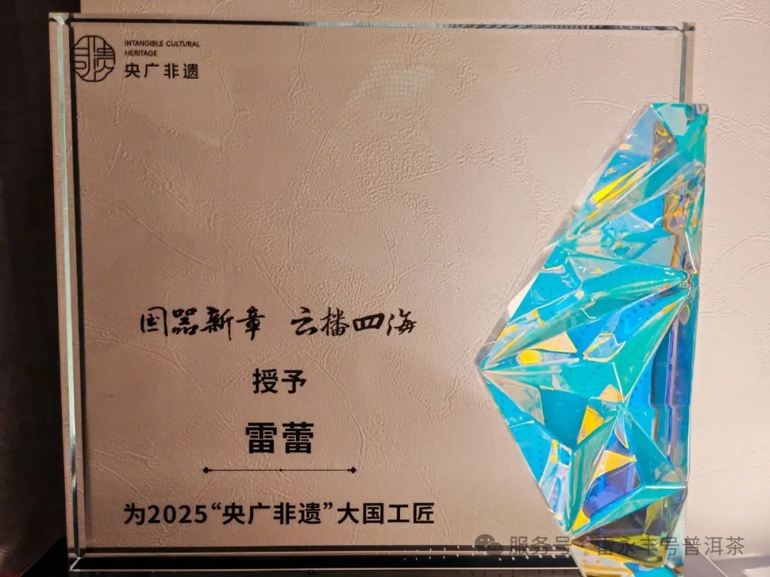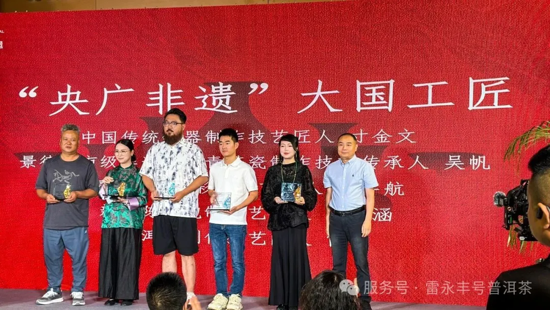 2025年6月,北京中央廣播電視總台“央廣非遺大國工匠”頒獎典禮上,雷永豐號第十四代傳承人雷蕾女士與銅雕大師朱炳仁、烏銅走銀傳承人金永才、瀾滄古茶創始人杜春嶢等泰斗同臺受獎,成為普洱茶界獲此殊榮的兩位女性傳承人之一。這一榮譽不僅是對雷氏家族製茶技藝的肯定,更印證了雷永豐號從皇室貢茶到非遺瑰寶的傳奇生命力。