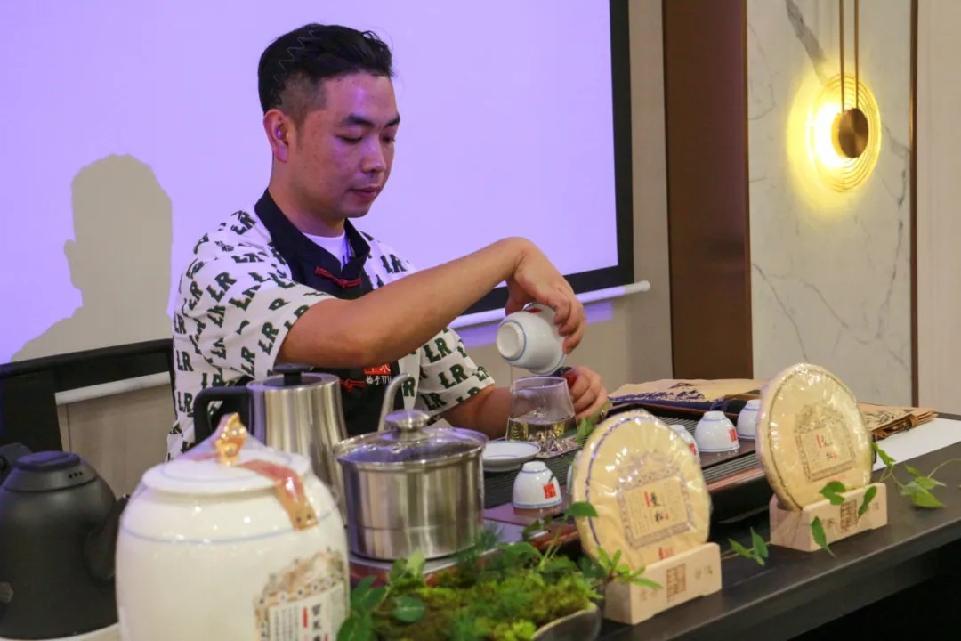 品鑒環節,雷永豐的茶藝師為大家詳細介紹了曼松貢茶的沖泡技巧和品鑒方法。