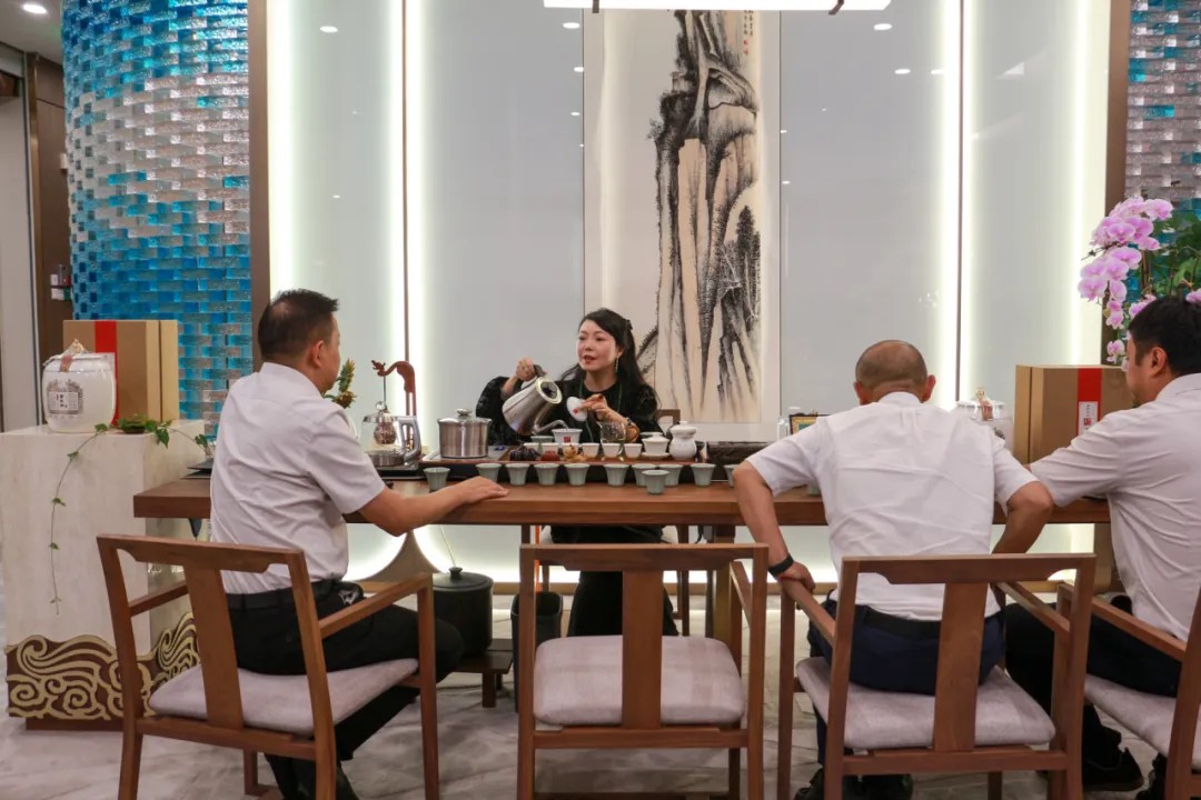 雷永豐第十四代傳承人雷蕾女士與在場嘉賓共同品嚐了雷永豐的曼松貢茶,並進行了深入的交流,大家對其口感和香氣給予了高度評價。