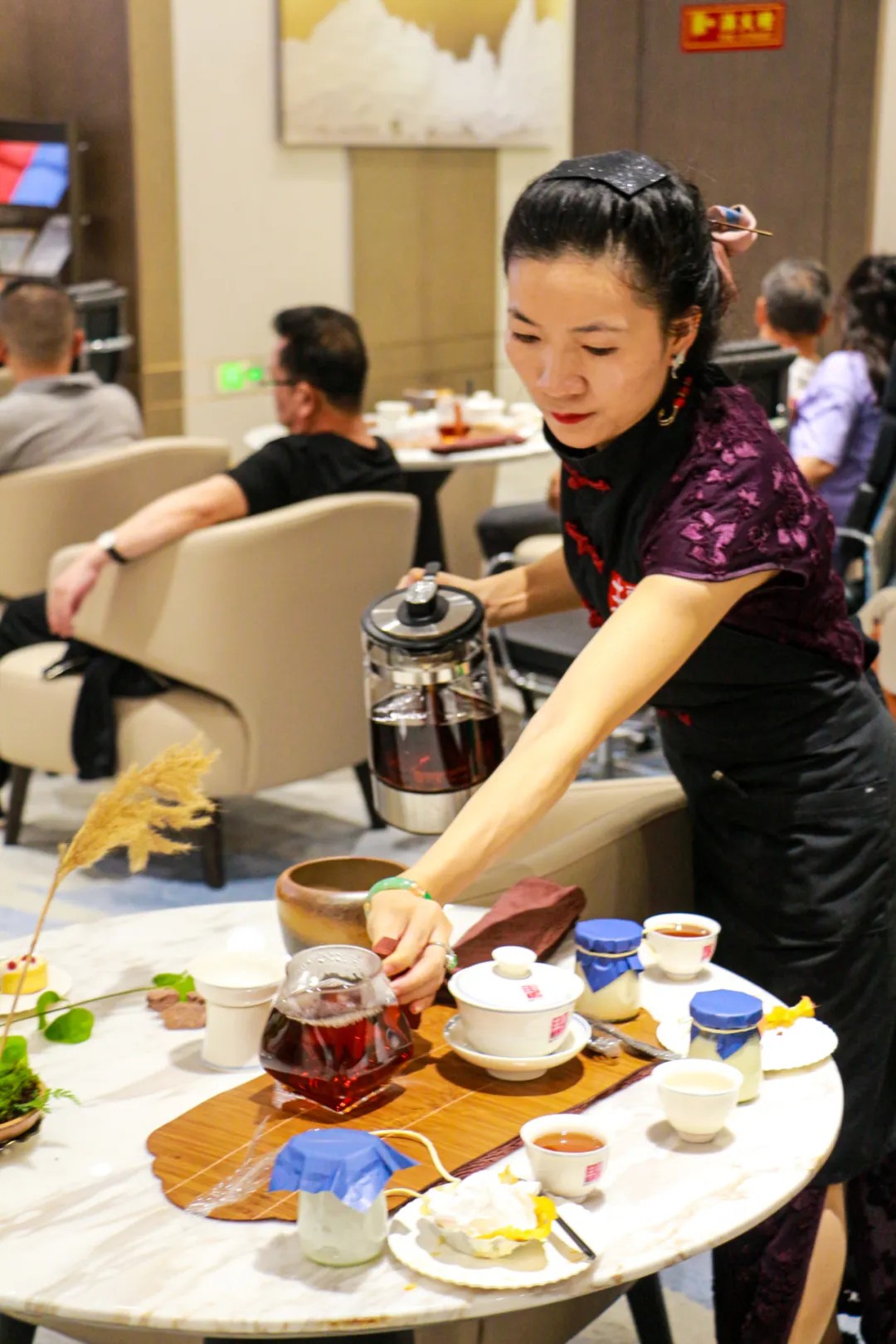 品鑒環節,雷永豐的茶藝師為大家詳細介紹了曼松貢茶的沖泡技巧和品鑒方法。